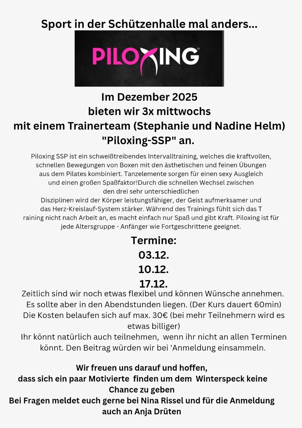 Wir hoffen auf zahlreiche Beteiligung!